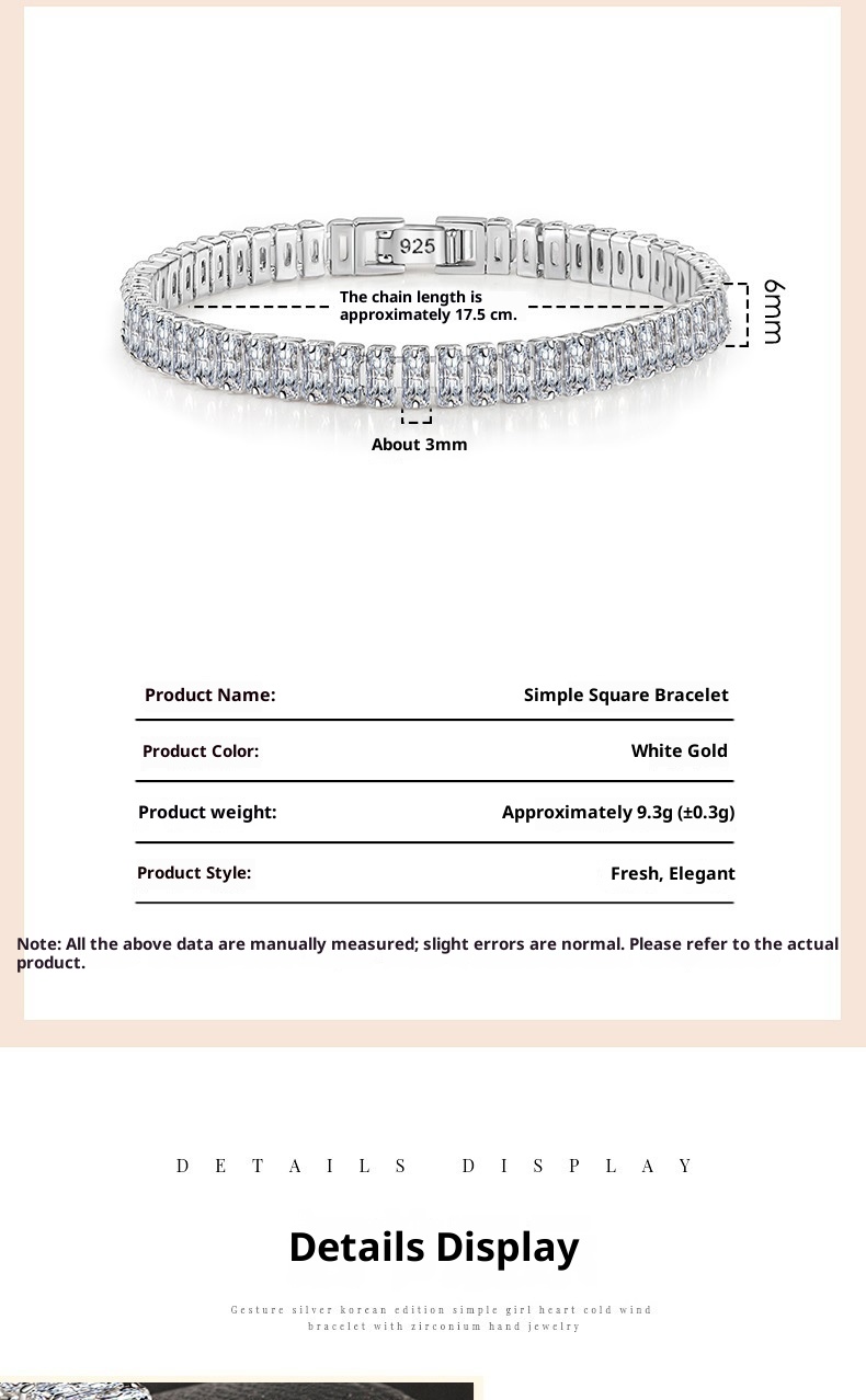 Women's Personality Thick Chain Rectangle Zircon Silver Elegant Bracelet